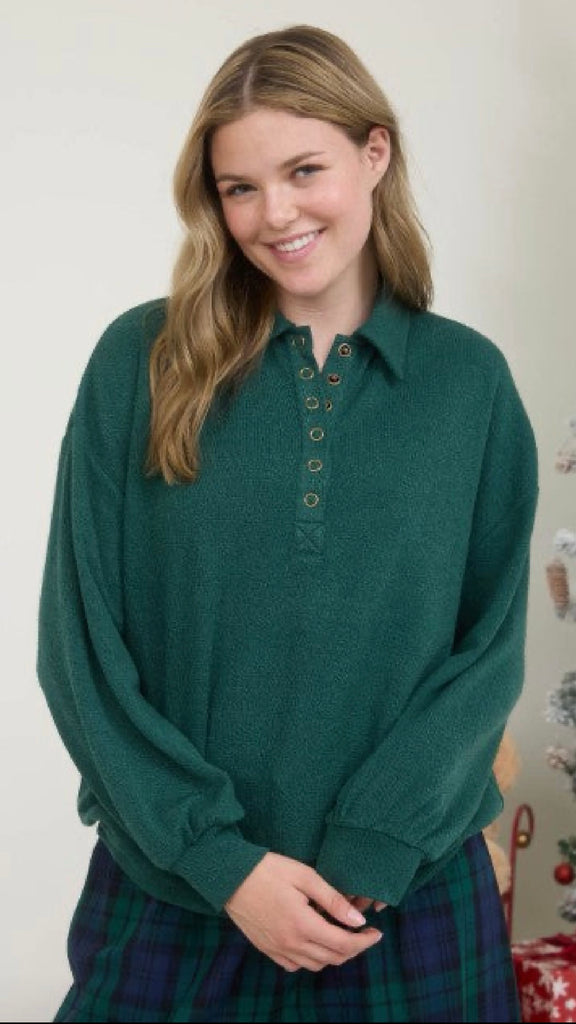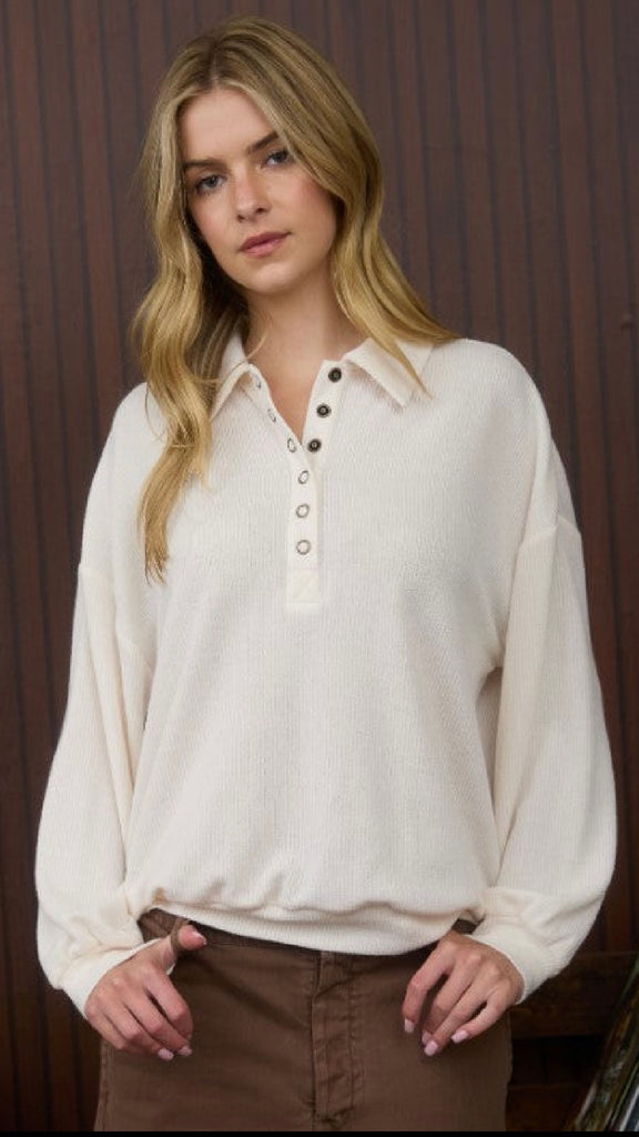 Half Snap Long Sleeve Top